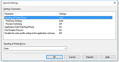 Das Dialogfeld Sondereinst. (Special Settings) wird geöffnet.
