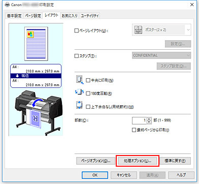 [レイアウト]シートの[処理オプション...]をクリック