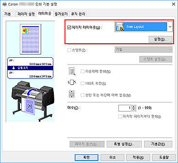 인쇄를 실행하면 Canon imagePROGRAF Free Layout이 시작됩니다. Canon imagePROGRAF Free Layout을 사용하면 이미지를 편집하고 다시 정렬할 수 있습니다.