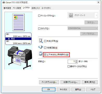 印刷を実行すると、上下の余白をなくし、用紙を節約して印刷することができます。