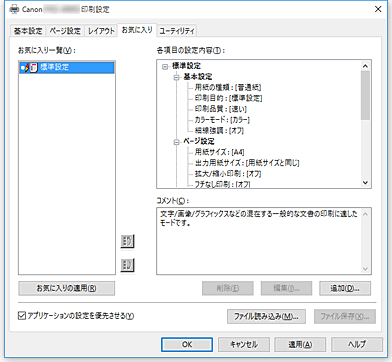現在の印刷の設定をお気に入りの設定として登録できます。 - [アプリケーションの設定を優先させる]