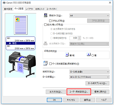 [ページ設定]シートの[ユーザー用紙設定...]をクリック