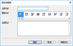 在名称中,输入收藏设置的名称。 根据需要设置图标和注释字段,然后单击确定。