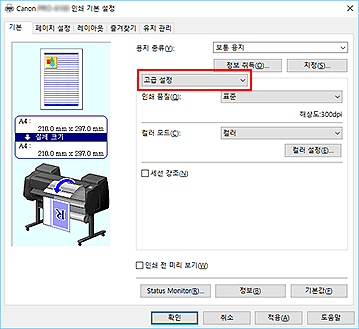 기본(Main) 탭의 풀다운 메뉴에서 고급 설정(Advanced Settings)을 선택합니다.