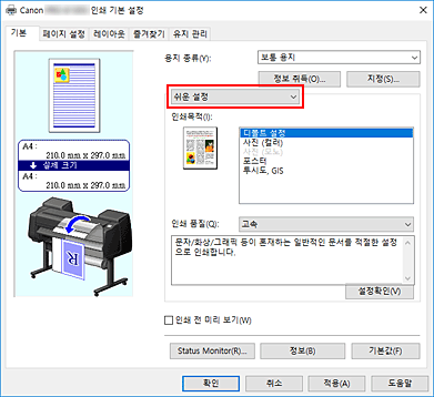 인쇄목적(Print Target)에서 문서에 맞는 설정을 선택합니다.