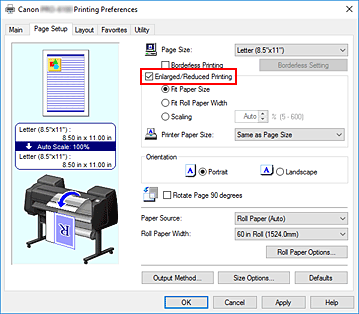 Marque la casilla de verificación Impresión ampliada/reducida (Enlarged/Reduced Printing).