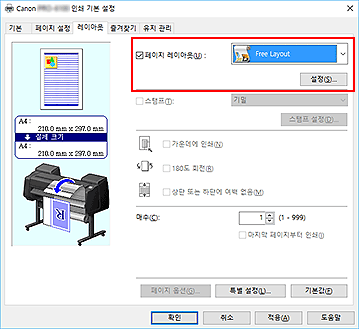 인쇄를 실행하면 Canon imagePROGRAF Free Layout이 시작됩니다. Canon imagePROGRAF Free Layout을 사용하면 이미지를 편집하고 다시 정렬할 수 있습니다.