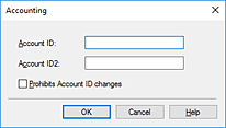 A janela de propriedades da impressora da impressora aparece.Clique em Contabilidade (Accounting) na guia Configurações de dispositivo (Device Settings)