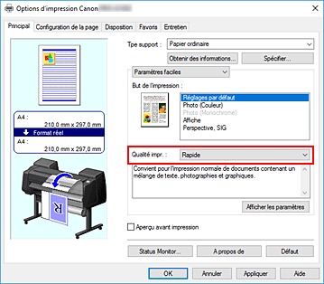 Dans Qualité impr., sélectionnez Haute, Standard ou Rapide, selon vos besoins.