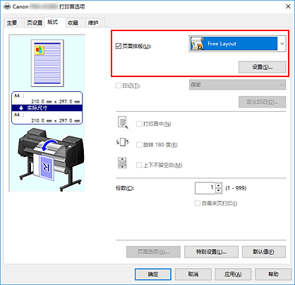 打印时,Canon imagePROGRAF Free Layout将启动。 Canon imagePROGRAF Free Layout可以对图像进行编辑和重新排列。