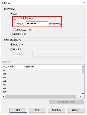 如果输入在打印机操作面板上设置的PIN码,将打印打印作业。