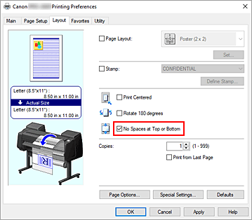 Na guia Layout, marque a caixa de seleção Sem espaç. na sup. ou inf. (No Spaces at Top or Bottom).