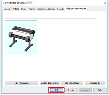 Récupère les dernières informations sur le support de l'imprimante et met à jour ces informations dans le pilote d'imprimante. - Gestion des comptes