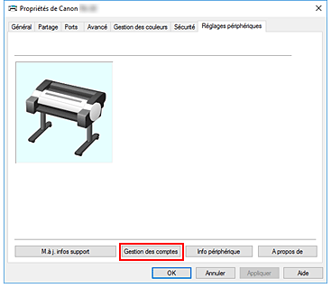 3. Cliquez sur Gestion des comptes dans l'onglet Réglages périphériques