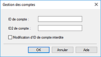 Si cette option est définie, les utilisateurs ne disposant pas des droits d'administrateur ne peuvent pas définir ID de compte et ID2 de compte.