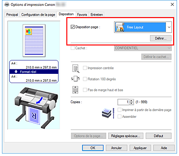 Dans l'onglet Disposition, cochez la case Mise en page, puis, dans le menu déroulant, sélectionnez Free Layout.