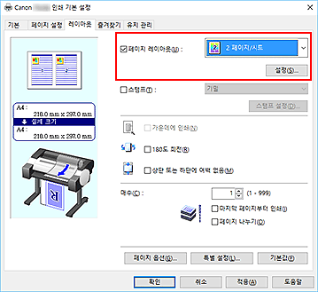 중요- 페이지 설정(Page Setup) 탭에서 배너 인쇄(Banner Printing) 확인란을 선택한 경우 페이지 레이아웃(Page Layout)은 회색으로 표시되고 설정할 수 없습니다.