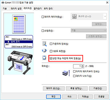 롤 용지에 인쇄하는 경우 상단 및 하단 여백을 줄여 용지를 절약할 수 있습니다.