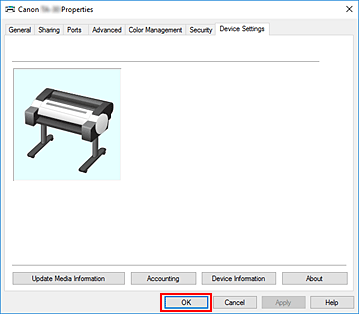 Damit werden die aktuellen Medieninformationen vom Drucker abgerufen und die Medieninformationen im Druckertreiber aktualisiert. - Accounting