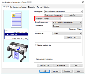 Dans Mode couleur, sélectionnez Couleur, puis cliquez sur Régl. couleur....