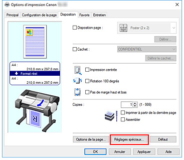 Cliquez sur Réglages spéciaux... dans l'onglet Disposition