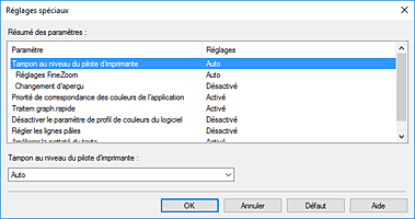 La boîte de dialogue Réglages spéciaux s'affiche.