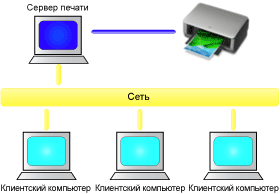 Если компьютеры используются в сетевой среде, документы можно печатать с нескольких компьютеров с общим доступом к одному принтеру.
