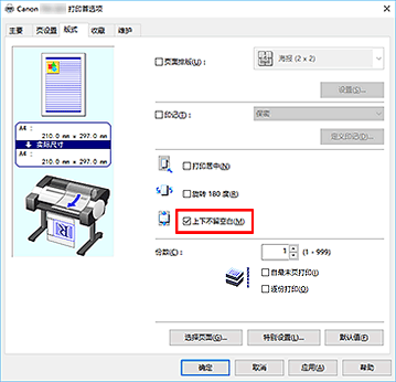 从页设置选项卡的页尺寸列表中,选择与使用应用程序软件创建的文档相同的尺寸。