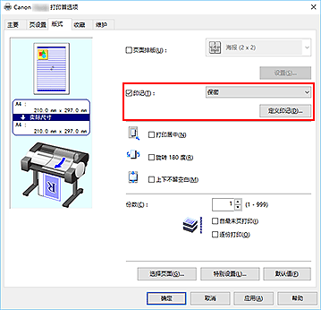 在版式选项卡上,选中印记复选框,然后从列表中选择要使用的印记。