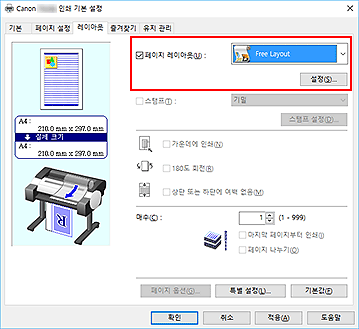 인쇄를 실행하면 Canon imagePROGRAF Free Layout이 시작됩니다. Canon imagePROGRAF Free Layout을 사용하면 이미지를 편집하고 다시 정렬할 수 있습니다.