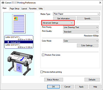 1. Abra la ventana de configuración del controlador de impresora