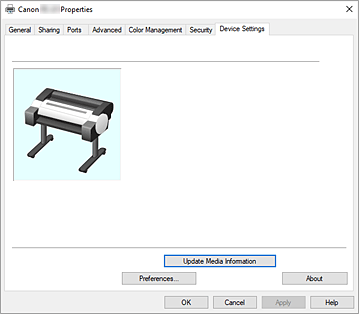 Gets the latest media information from the printer and updates the media information in the printer driver. - Preferences...
