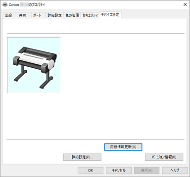 プリンターから最新の用紙情報を取得してプリンタードライバーの用紙情報を更新します。 - [詳細設定...]