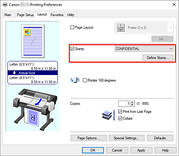 • Depending on your usage environment, you may not be able to use the Stamp function. In this case, set Spooling at Printer Driver in the Special Settings dialog box to Yes.