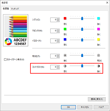 [色設定]ダイアログボックスが表示されます。コントラストを調整する