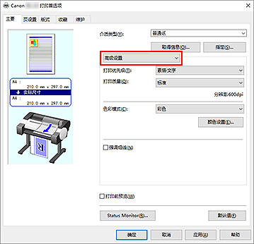 注释- 可选的色彩模式取决于为主要选项卡上的介质类型选择的介质类型。