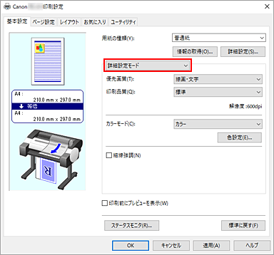 印刷品質の[ユーザー設定]で印刷品質のレベルを細かく設定することができます。