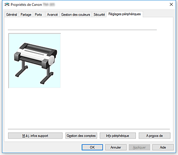 Récupère les dernières informations sur le support de l'imprimante et met à jour ces informations dans le pilote d'imprimante. - Gestion des comptes