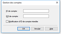 Si cette option est définie, les utilisateurs ne disposant pas des droits d'administrateur ne peuvent pas définir ID de compte et ID2 de compte.