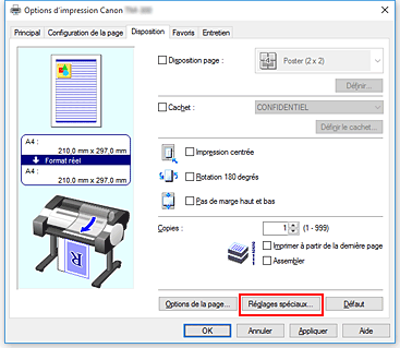 2. Cliquez sur Réglages spéciaux... dans l'onglet Disposition