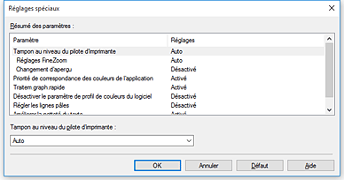 La boîte de dialogue Réglages spéciaux s'affiche.