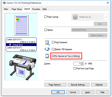 Aktivieren Sie auf der Registerkarte Layout die Option Keine Leerst. ob. u. unt. (No Spaces at Top or Bottom).