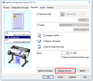 Cliquez sur Réglages spéciaux... dans l'onglet Disposition
