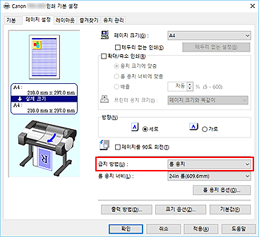 용지 공급(Paper Source)에서 롤 용지(Roll Paper)를 선택합니다.