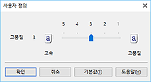 인쇄 품질(Print Quality) 탭에서 사용자 정의(Custom)를 사용하면 인쇄 품질 수준의 세부 설정을 지정할 수 있습니다.