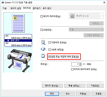 롤 용지에 인쇄하는 경우 상단 및 하단 여백을 줄여 용지를 절약할 수 있습니다.