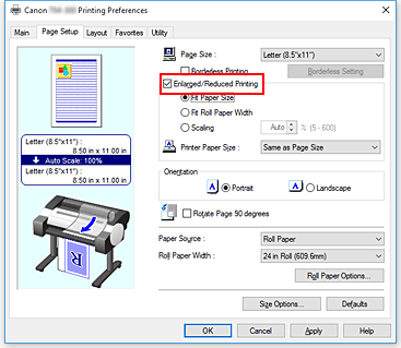 Marque la casilla de verificación Impresión ampliada/reducida (Enlarged/Reduced Printing).