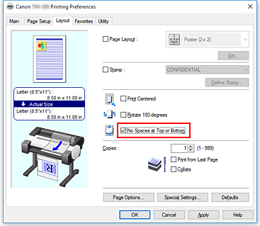Nella scheda Layout, selezionare la casella di controllo No spazio in cima e fondo (No Spaces at Top or Bottom).