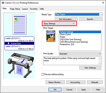 En el menú desplegable, seleccione Configuración sencilla (Easy Settings).