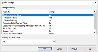 Откроется диалоговое окно Специальные настройки (Special Settings).